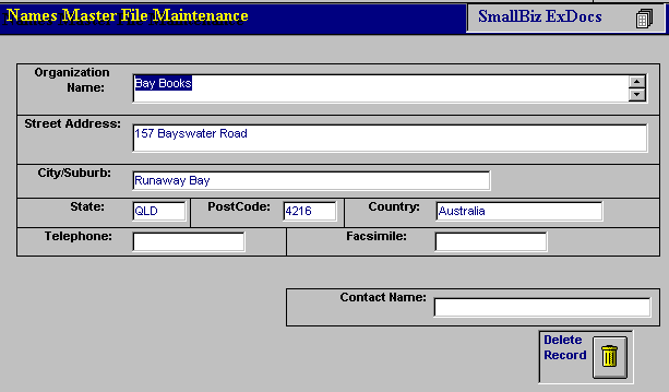 SmallBiz ExDocs © Copyright 1995-2003 Export Document Software - Denconex Computing & BI2000