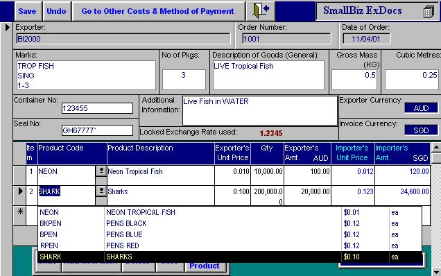 SmallBiz ExDocs © Copyright 1995-2003 Export Document Software - Denconex Computing & BI2000