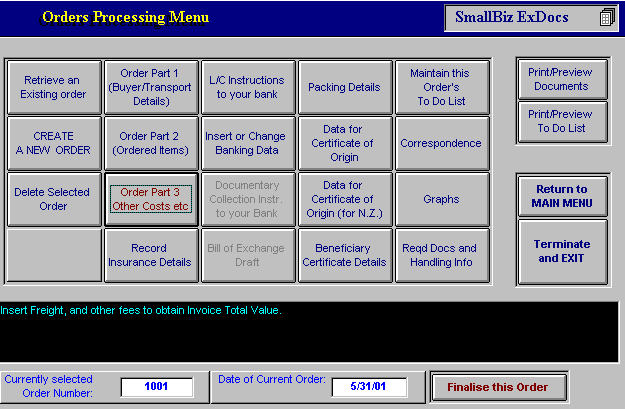 SmallBiz ExDocs © Copyright 1995-2003 Export Document Software - Denconex Computing & BI2000