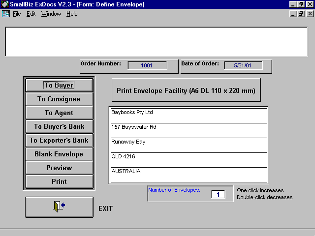 SmallBiz ExDocs © Copyright 1995-2003 Export Document Software - Denconex Computing & BI2000