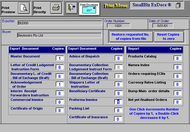 SmallBiz ExDocs © Copyright 1995-2003 Export Document Software - Denconex Computing & BI2000