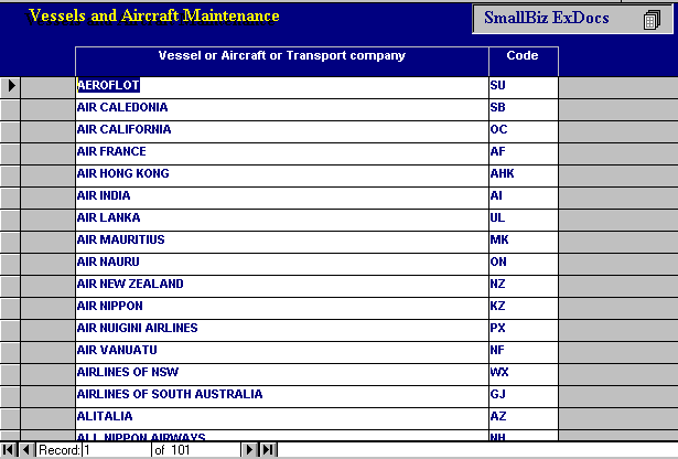 SmallBiz ExDocs © Copyright 1995-2003 Export Document Software - Denconex Computing & BI2000